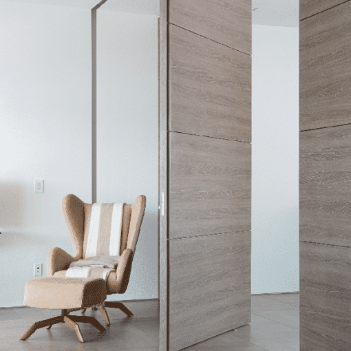 Dayoris Custom Doors plays the leading role in this South Florida minimalist Bauhaus masterpiece, incorporating rich deep walnut veneers,