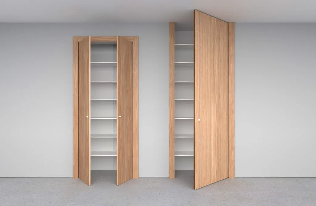 The Dayoris Closet Door presents a unique and precisely engineered solution tailored for small spaces. Crafted using either a ¾” or 1” solid core slab.