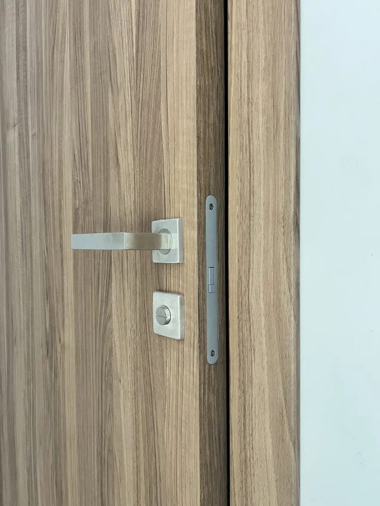 The unique design of the door allows the use of an appropriately sized door slab in a small space while still maintaining the presence of a beautiful hi-end contemporary door profile.