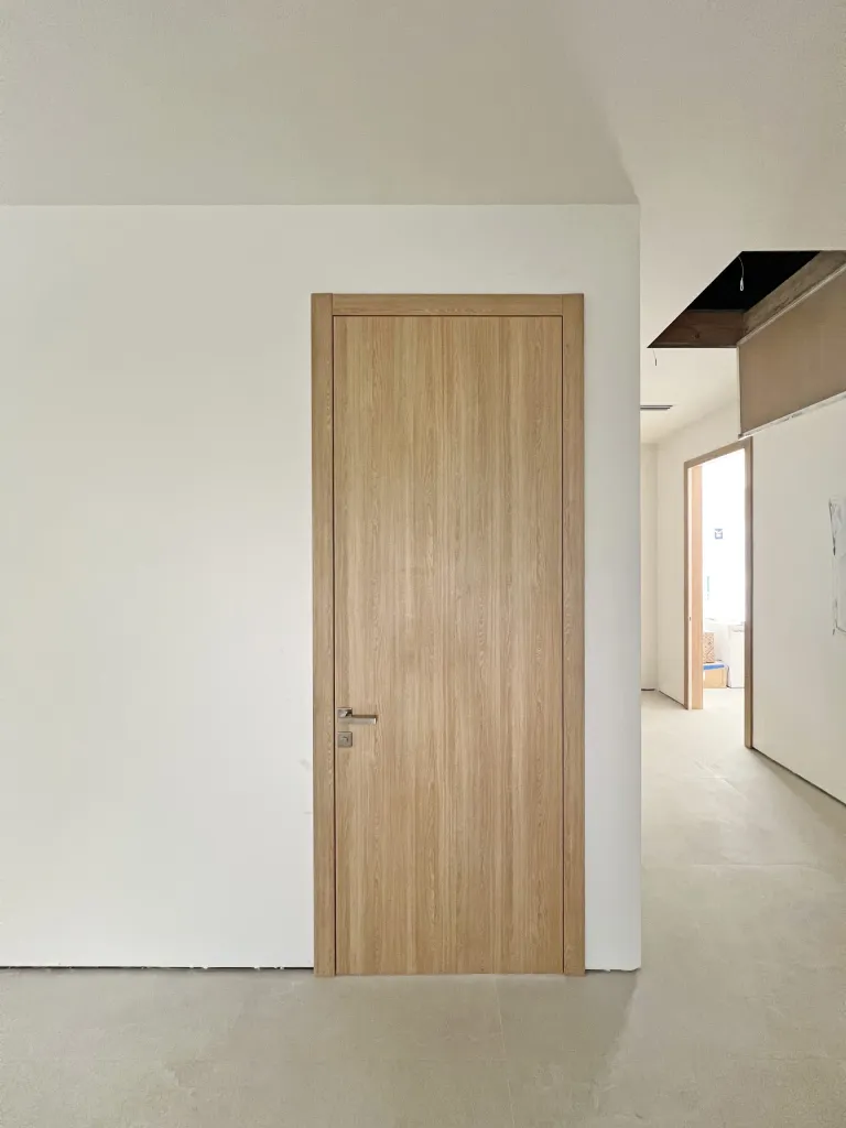 The DAYORIS Telaio Door emphasizes the shadow effect of a multi plane profile between the door and casing. Once installed the DAYORIS Telaio modern door presents itself with a completely finished, richly defined, wrap around wood casing and jamb that is adaptable to any wall thickness.