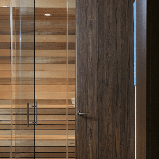 Brazilian Architectural firm ARCHITEXTURE designed this contemporary hi-rise apartment using a combination of DAYORIS European Lacquer, Filo Muro, floor to ceiling doors. These flush frameless doors were manufactured to work in coordination with the custom backlit “3D” paneling installed along the entrance wall of the apartment. The living room wall paneling was installed using a stained wire brushed Italian oak Veneer incorporated with mirror. The design intent of the Dayoris Flush Doors and mirrored wall paneling was to bring a sense of height and volume to the apartment. To further enhance the feeling of volume the apartment was designed without baseboard, incorporating a Fry Reglet reveal.