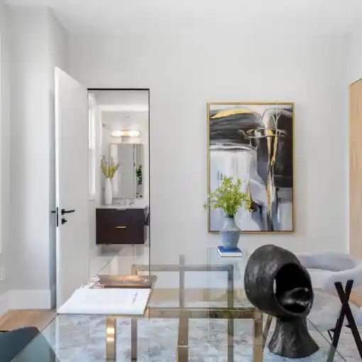 Dayoris Custom Doors plays the leading role in this South Florida minimalist Bauhaus masterpiece, incorporating rich deep walnut veneers,