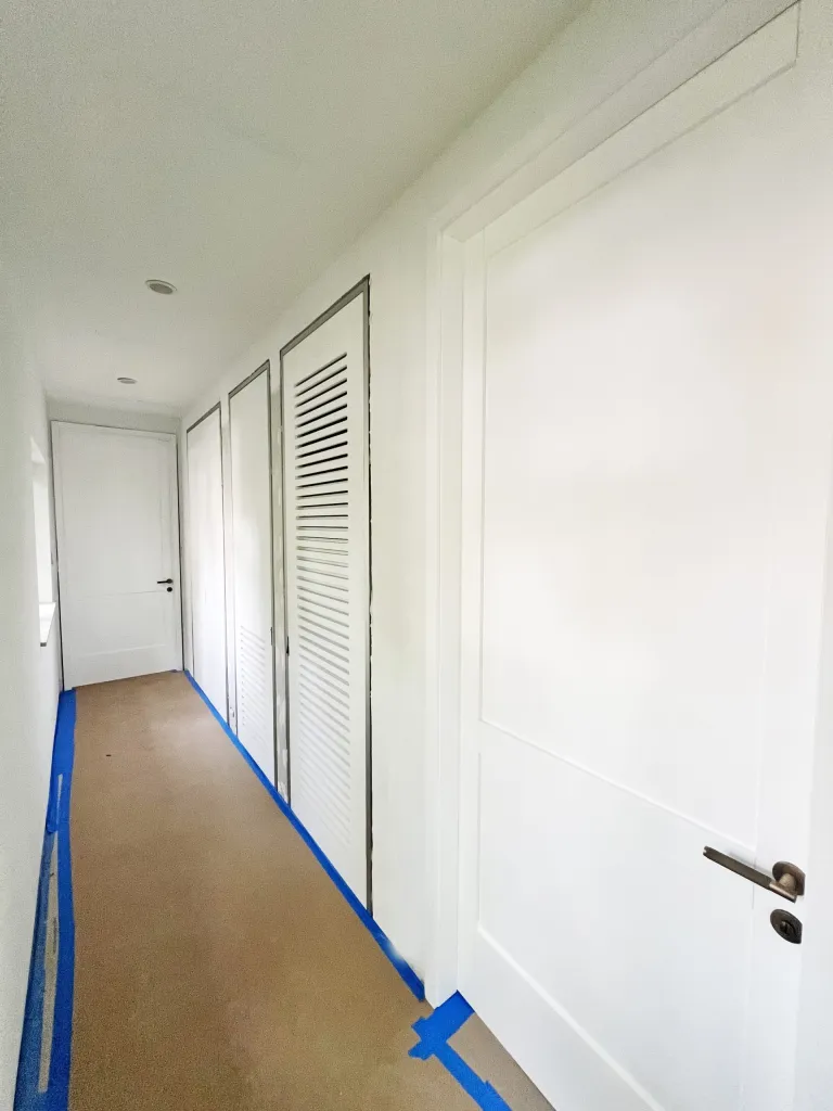 The casing of the door sits proud of the adjacent wall accentuating a coplanar shadow effect between the door and casing. The square contemporary casing will exude a clean sense of contemporary design.